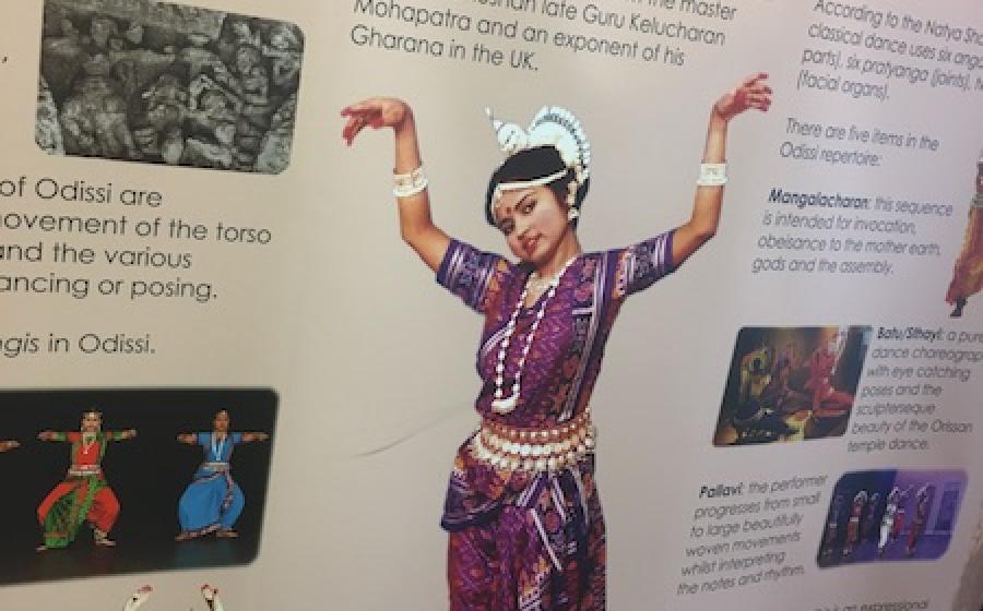 Odissi dancer Sushmita Pati is celebrating the twentieth anniversary of Kala The Arts, the organisation she set up and directs based in Basingstoke, Hampshire. To mark the occasion, she has mounted a modest exhibition which gives a background of the odissi form and traces Sushmita’s journey from arriving in the UK in 1986 to her founding Kala The Arts in 1998. Her efforts to transplant the form which grew out of the temples in East India into the English home counties is not a walk in the park.